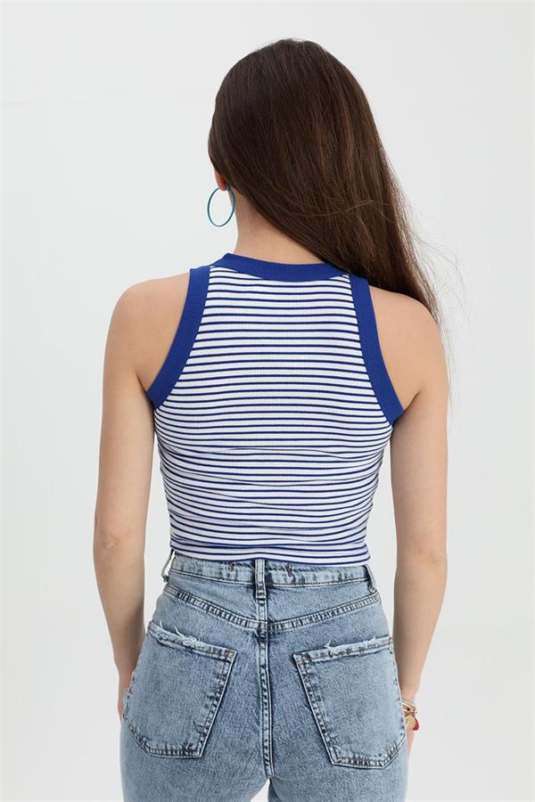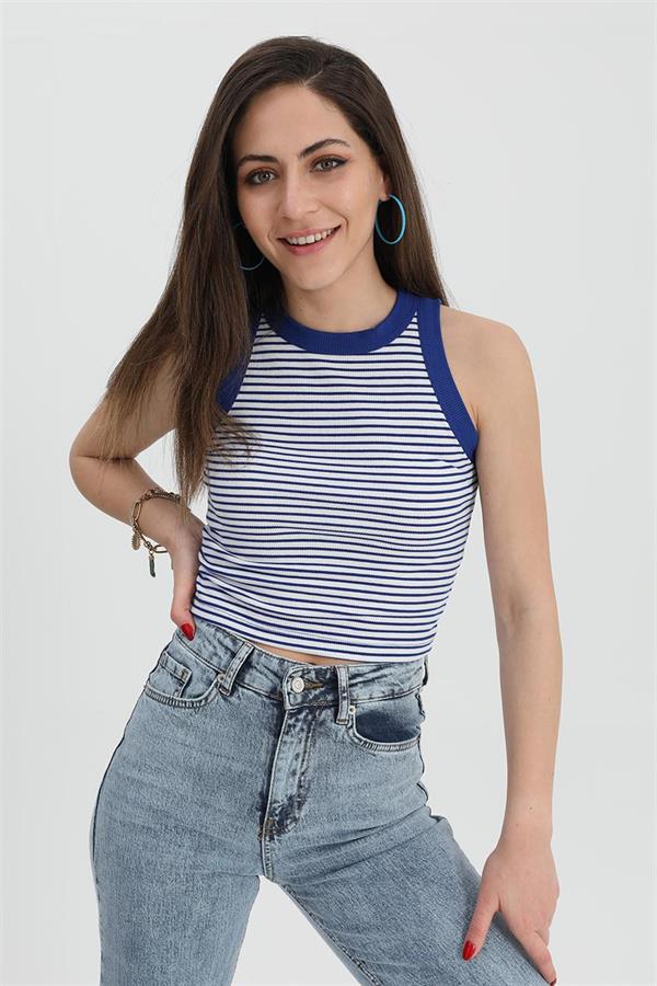 Atlet Geniş Biyeli Çizgili Kaşkorse - SaksMavisi