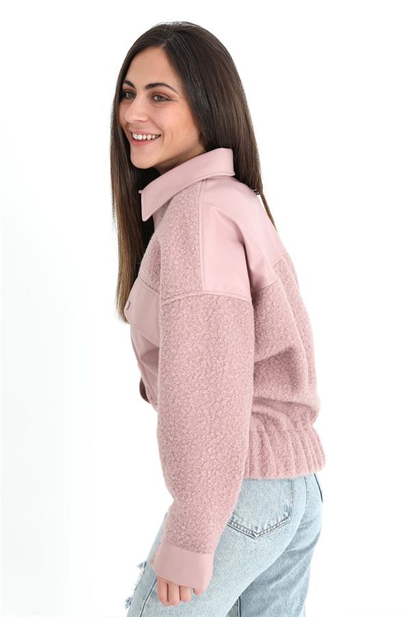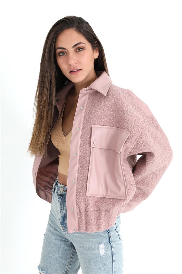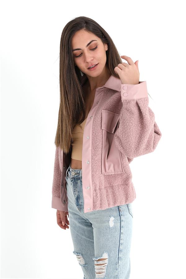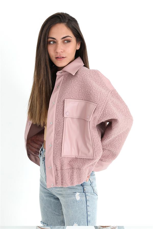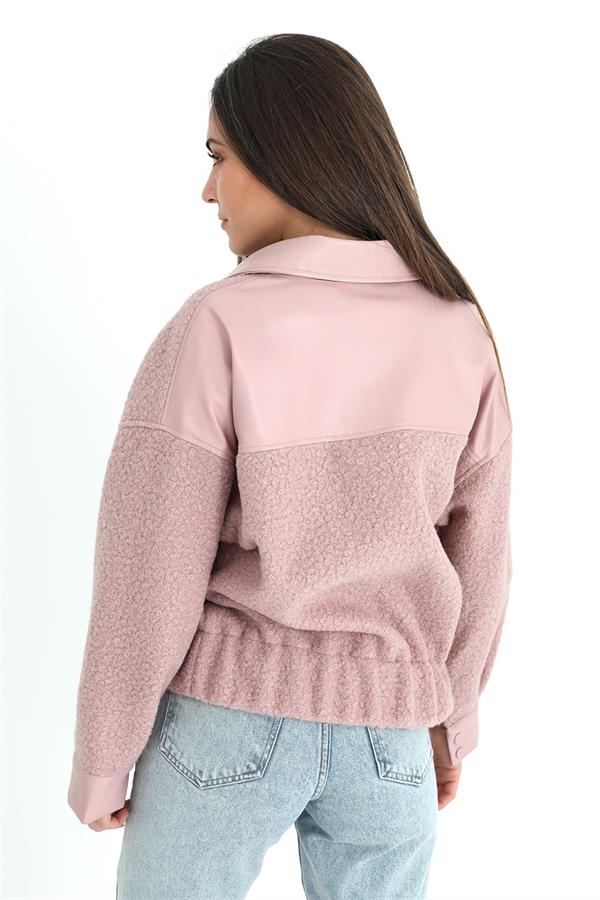 Beli Lastikli Çıtçıtlı Bergamo Gömlek Ceket - Pudra