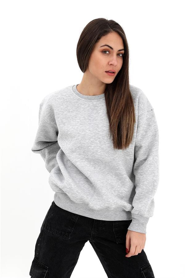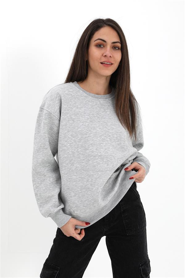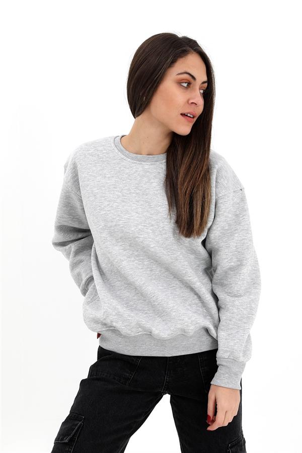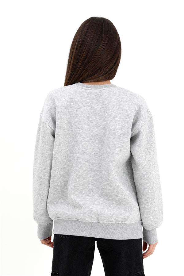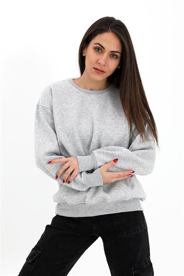 Bisiklet Yaka Basıc Üç İplik Sweat - Gri