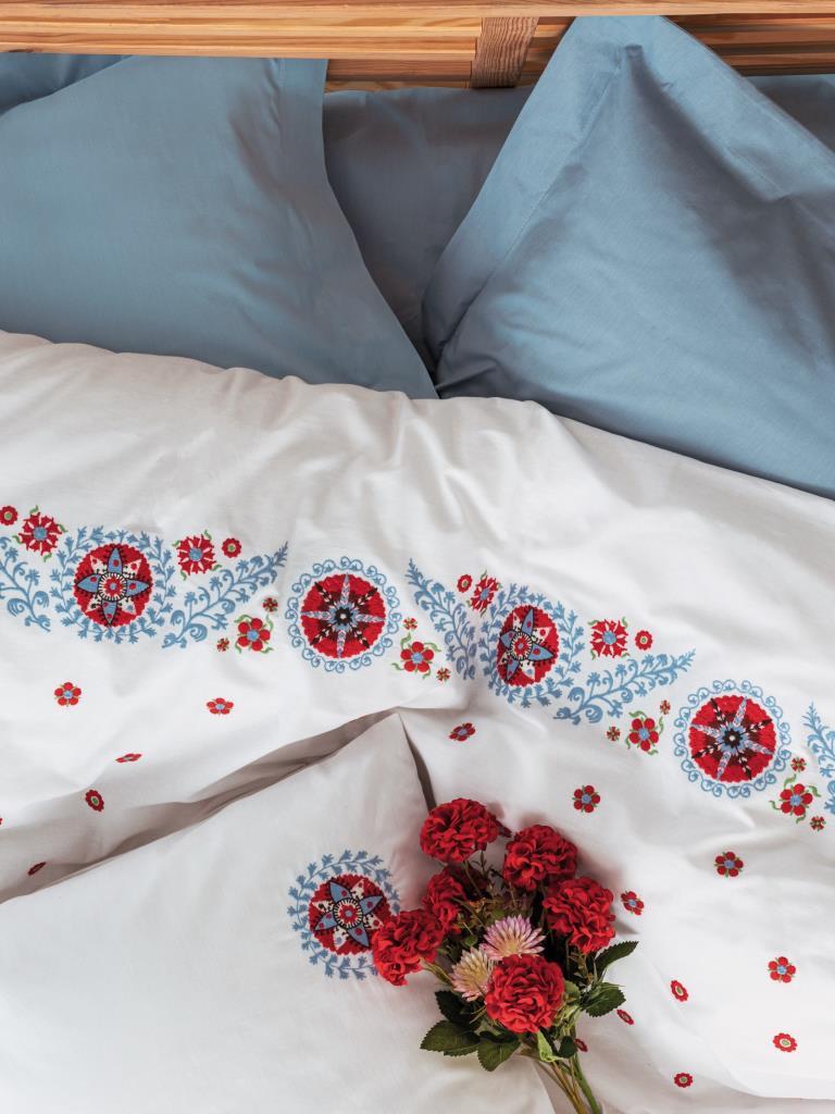 Cotton Box Brode Ranforce Çift Kişilik Nevresim Takımı Mabel Mavi