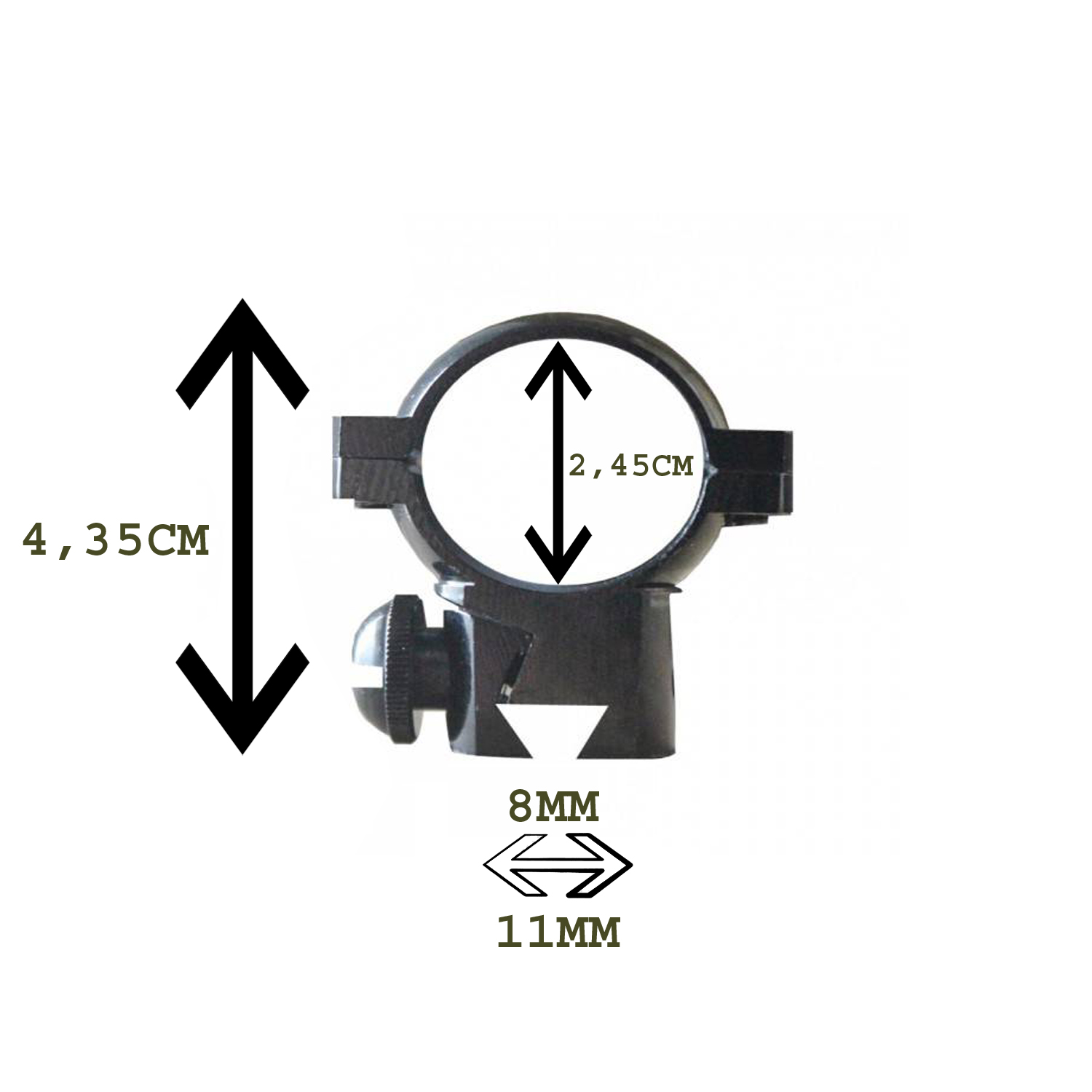 Dürbünün takılacağı ray 8mm ile 11mm aralığında olmalıdır, dürbünün takılacağı kelepçe vida ayarlı olup sıkı halindeki çap ölçüsü 2,45cm gelmektedir.