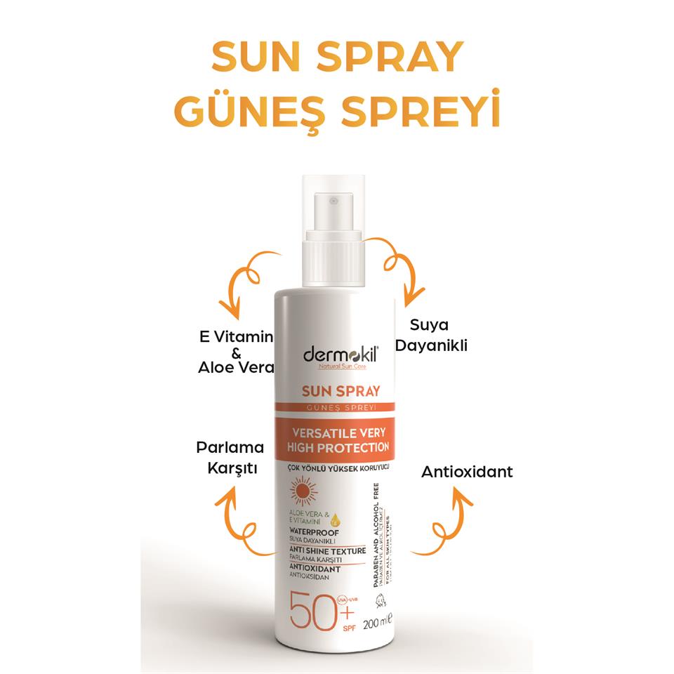 Dermokil Sun Çok Yönlü Yüksek Koruyucu Güneş Spreyi 50 SPF 200ml Özellikleri;