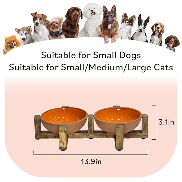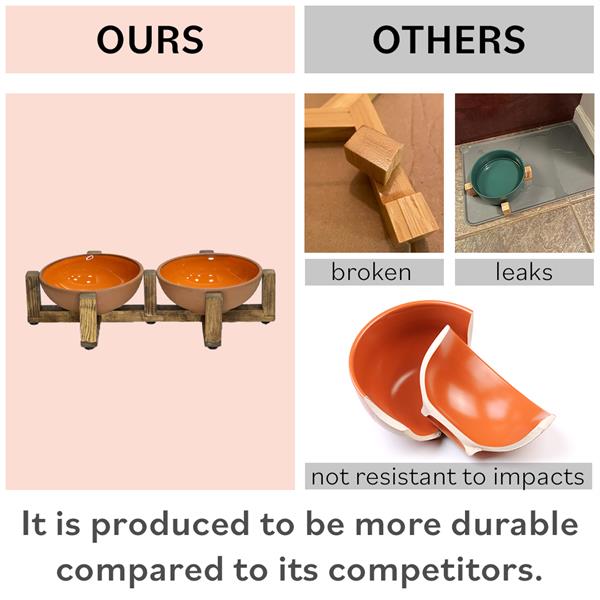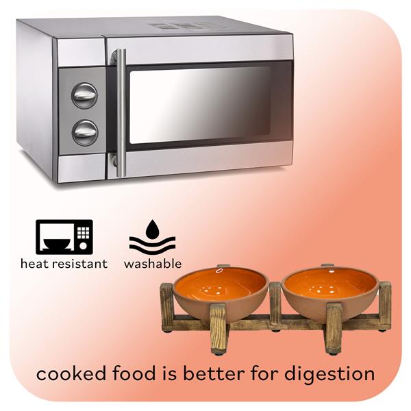 Doğal Sırlı Pişmiş Toprak Kedi Köpek Mama Kabı Ahşap Standlı Anti-Bakteriyel İkili Kedi Köpek Kaseleri