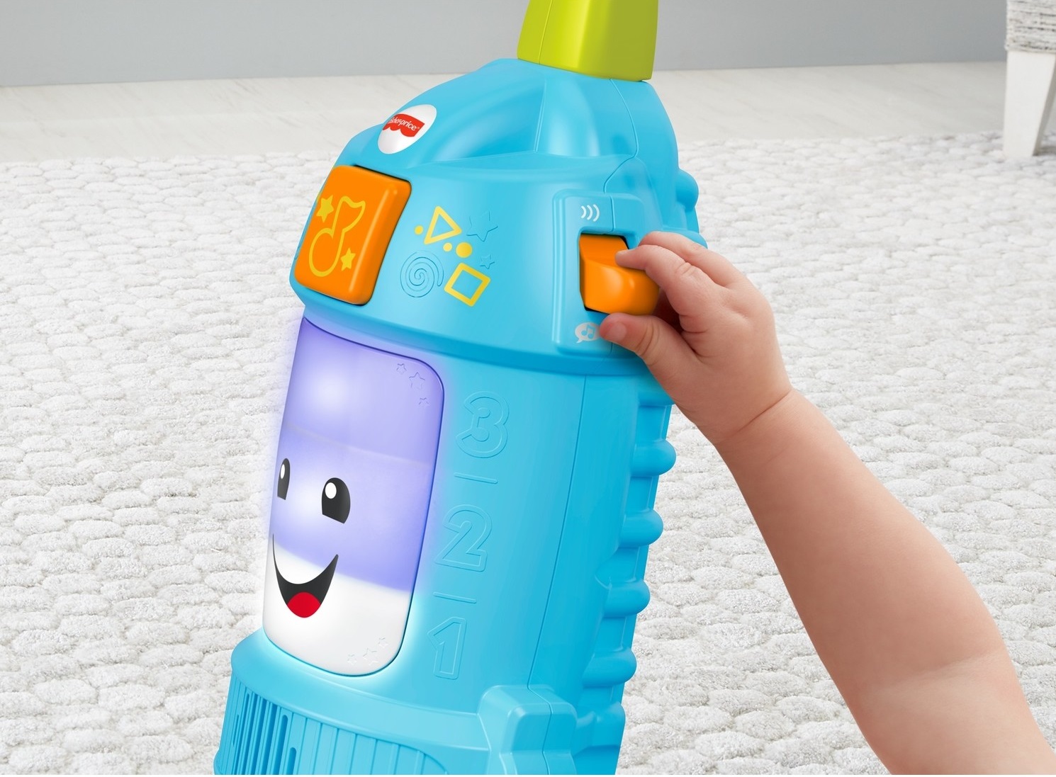 'Güç' düğmesini yukarı kaldırdığınızda oyuncak, elektrikli süpürge sesi çıkarır ve minik yardımcınızı taklit oyununa alıştırır.