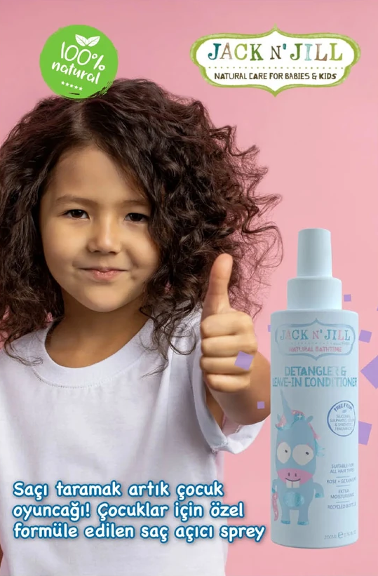 Jack N Jill Kolay Tarama Saç Açıcı ve Saç Kremi Sprey DETANGLER durulama gerektirmez.