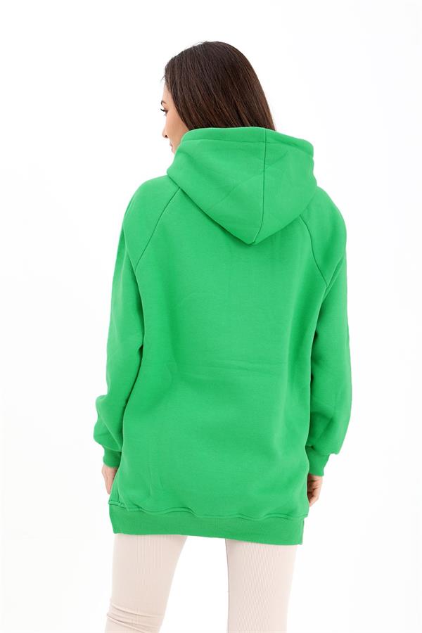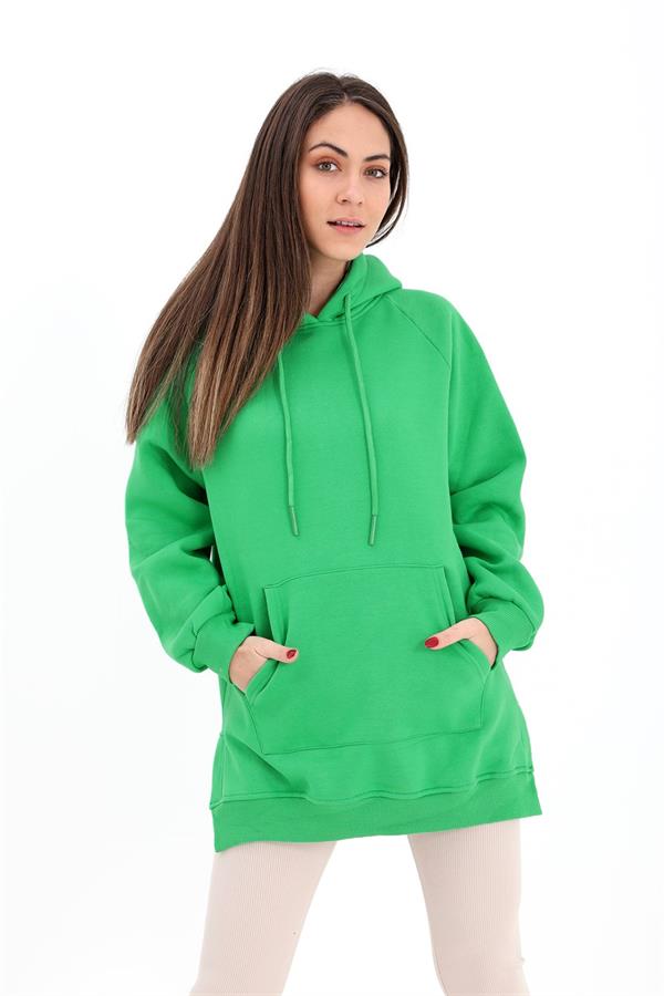 Kapüşonlu Yanı Yırtmaçlı İç Üplik Sweat - Yeşil