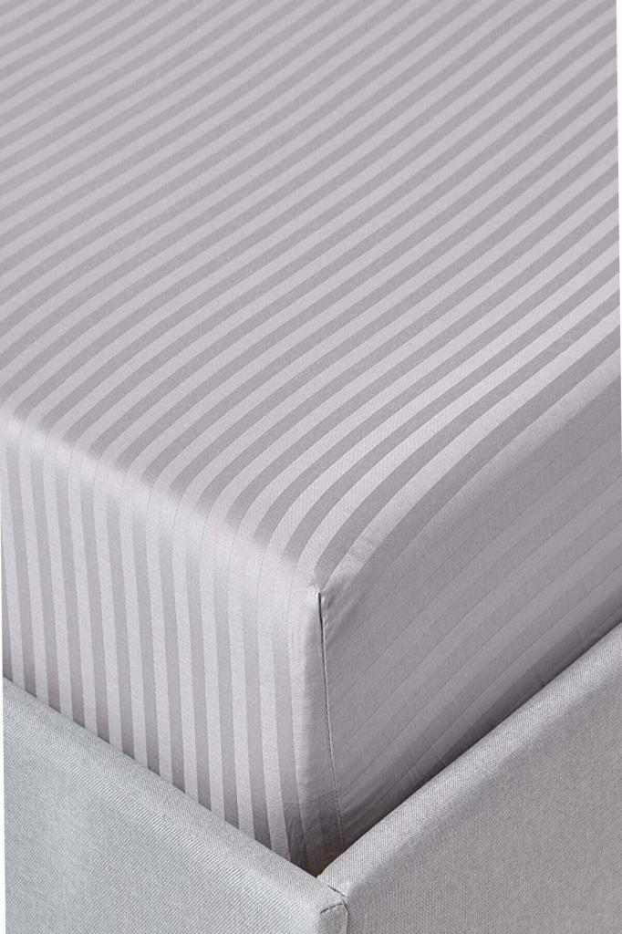 Nevresim Dünyası Basic Stripe Çift Kişilik Fitted Micro Saten Çarşaf ve 2 Yastık Kılıfı Gri