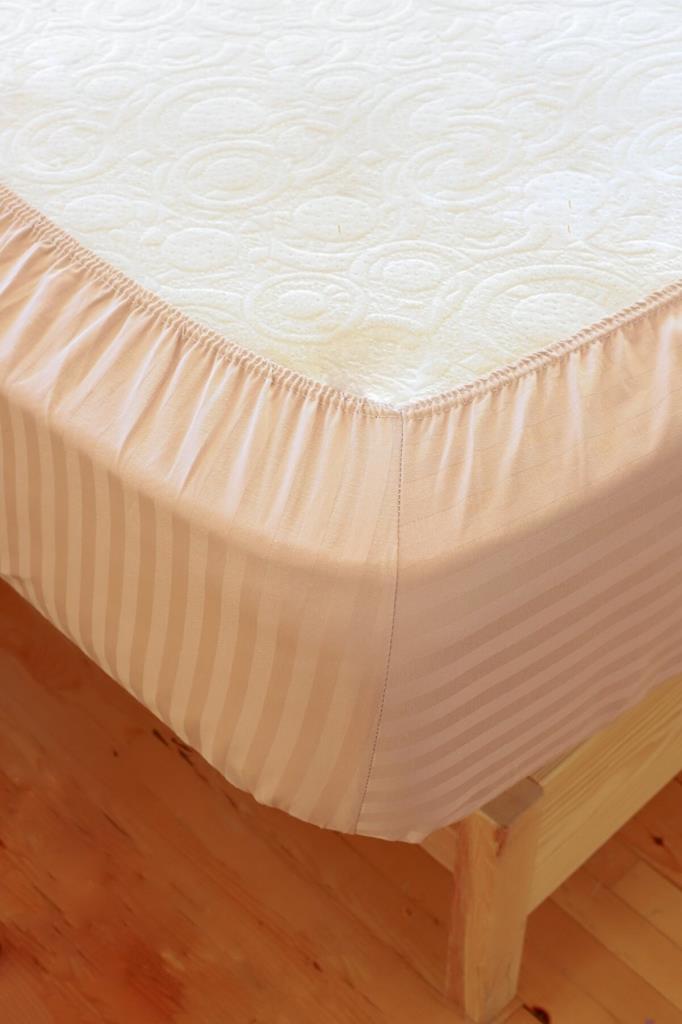 Nevresim Dünyası Basic Stripe Tek Kişilik Fitted Micro Saten Çarşaf ve 1 Yastık Kılıfı Cappucino