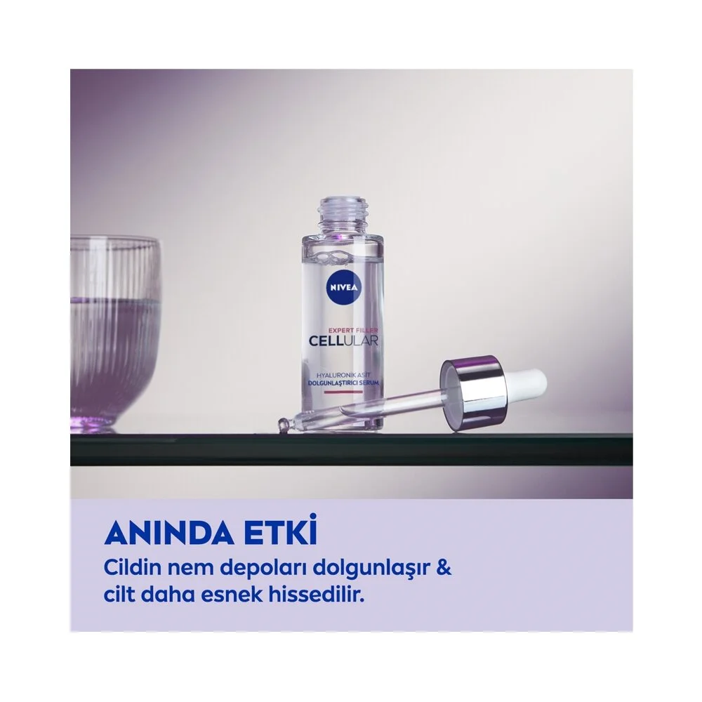 NIVEA Cellular Expert Filler, hyaluronik asit içeren dolgunlaştırıcı cilt serumudur. Bu serum, cildinize yoğun nem sağlar ve hyaluronik asidin dolgunlaştırıcı etkisiyle cildinizi daha genç ve canlı göstermeye yardımcı olur. Hafif formülü cildin hızla emilmesine olanak tanır ve ince çizgileri azaltmaya, cildi sıkılaştırmaya ve dolgunlaştırmaya yönelik etkiler sunar. 30 ml boyutuyla kullanımı pratik ve uzun süreli bir bakım sağlar. NIVEA Cellular Expert Filler, günlük cilt bakım rutininize ekleyerek cildinizin genç ve sağlıklı bir görünüm kazanmasına destek olabilir.