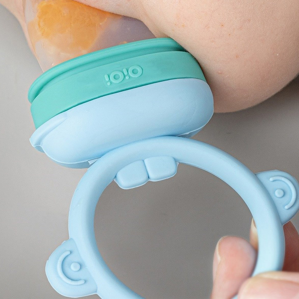 OiOi Silikon Püre Meyve Sebze Emziği Mavi Yeşil