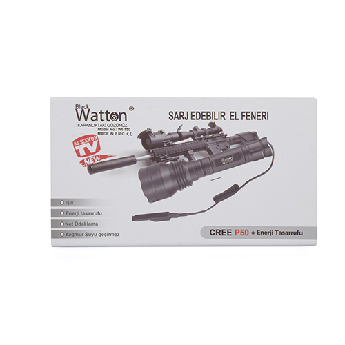 Işık Mesafesi :200-450 mt Işık Rengi : Mat Beyaz Çalışma Süresi :2 Saat Gövde Malzemesi :Alüminyum Metal Kullanım Şekli :Tek Modda Aydınlatma Yüksek Kullanım Özellikleri :Elde Kullanım Teknik Özellikleri :Şarj Edilebilir Pil 220/240 Watt 50/60 Hz Kutu İçeriği :Ürün,Usb Şarj,Tüfek Açma Kapama Kablosu, Şarj Kablosu ve Şarj edilebilir Pil Ampül Ömrü :100.000 Saattir Kullanım Yeri :Av, Kamp,Ev, Okul, Araba, Otel, Restorant Tasarruflu Enerji Harcama Özelliği Önemli Uyarılar :Direk Göz İle Temas Ettirmeyiniz İlk Kullanımdan Önce 12 saat Şarj Ediniz. Kullanmadığınız Süreçte İçinde Pil Bırakmayınız WATTON PROFESYONEL P50'LED 3.000 LÜMEN ŞARJLI AV FENERİ WT-150 3.000 Lümen şarjlı av feneri geniş ışın açısı ile açık bir görünüm sağlar. WT-150 avcılık yaparken arama verimliliğini büyük ölçüde artıracaktır. P50 led ışığı sayesinde avcılığı daha güvenli hale getiren 3000 lümen ışık ile maksimum 450 metre aydınlatma mesafesi sağlar. Uzun odak aralığı, daha geniş aydınlatma ile değiştirilebilir kırmızı, yeşil ve sarı mercekleri sayesinde daha konforlu ve profesyonel avcılık deneyimi sağlar. Avcılık esnasında farklı durumların kullanımını karşılamak için yardımcı kırmızı ışığı gece görüşünü etkili bir şekilde korur ve sivrisinekleri uzak tutar, yaban hayatı gözlemi ve sinyal uyarısı için iyidir. Yeşil ışık, gece balıkçılığı ve kalamar balıkçılığı yaparken uygun aydınlatmaya sahip olmak maceranızı daha güvenli ve genel olarak daha üretken hale getirebilir. Gece avcılık sırasında geniş aydınlatma sağlar, ayrıca güvenli kalmak ve özellikle kalamar yakalamak daha fazla balık çekmek için kullanılabilir. Hayvanların gözleri kırmızı ışık ve yeşil ışığa duyarlı değildir. Bu nedenle, el feneri gece avı ve gece gözlemi için de kullanılabilir. Hayvanları rahatsız etmeden onları bulmak için kırmızı ve yeşil el feneri kullanılmaktadır. Ana Özellikler Uzunluğu 20 cm’dir. Şarj Edilebilir Pil 220/240 Watt 50/60 Hz dir. Tasarruflu enerji harcama özelliği ile uzun süre kullanım sağlamaktadır. 3000 lümen P50 Led güçlü el feneri olarak kullanabilir. Kutu içeriğinde Ürün, Usb Şarj, Tfek Açma Kapama Kablosu, Şarj Kablosu ve Şarj edilebilir Pil mevcuttur.