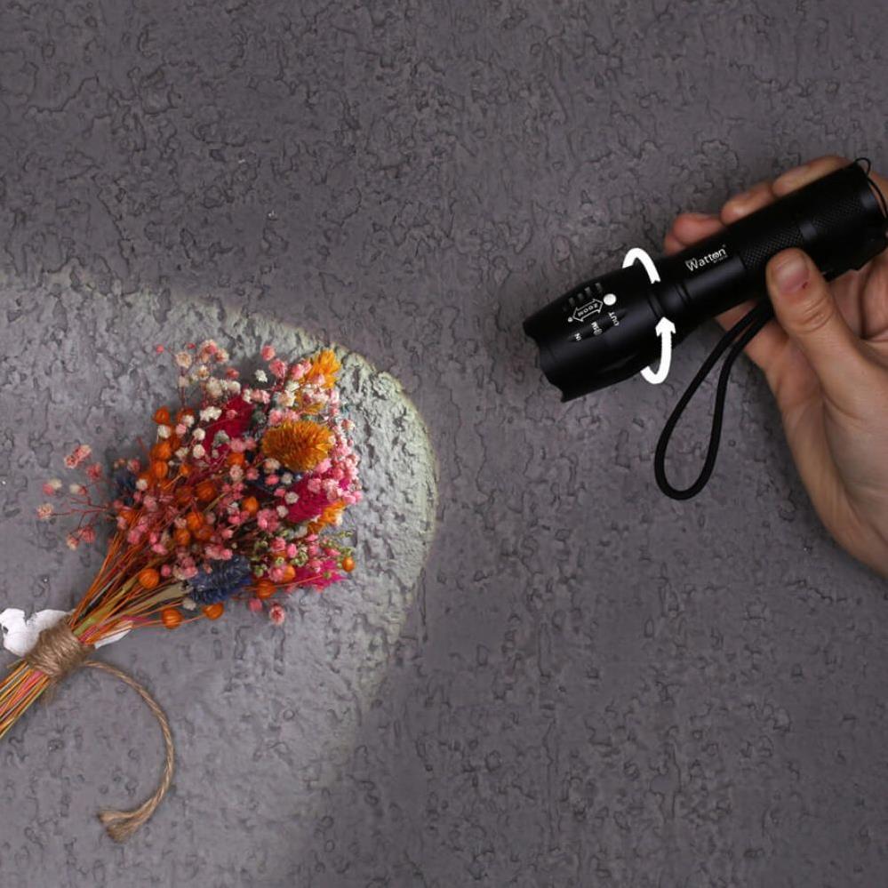 Acil durum ve savunma amaçlı olarak flaş modu WT-023 4 farklı aydınlatma modunun yanında, 2 aydınlatma seçeneği de sunar. SOS ve Strobe 2 farklı seçenekte gelen bu modlara ulaşmak için tek yapmanız gereken geçiş butonuna basmak.Her türlü ışıklandırma işinizi görmenize yarayacak olan şarjlı ve zoomlu el feneri 2 km uzunluğunda etki sağlayan bu fenerle, tüm ihtiyaçlarınızı en kısa zamanda halledip, harika bir biçimde sonuçlar alabilirsiniz. Harika tasarımıyla da ilginizi direkt olarak çekecek bu ürüne, hemen sahip olmak istemeniz çok normaldir. Oldukça uygun fiyatlı olan bu ürünle, olağanüstü performans sağlayabilir, paranızın daha fazla üzerinde bir kullanım sağlayabilirsiniz. WT-023 zoomlu özelliği sayesinde avcılık için çok yönlü avantajlar sağlıyor ve avınızın vazgeçilmezi haline gelecektir, yabani hayvanları, kuş ve balıkları, canlı veya cansız olarak ele geçirmek için yapılmıştır. Aydınlatma alanını büyütmek için yakınlaştırın.Işığı toplamak ve en parlak parlaklığı elde etmek için uzaklaştırın. İleri teknoloji tasarım ve yağmur suyuna dayanıklı tasarımı (El feneri arasında etkileyici performans) dayanıklı alüminyum gövdesi ve darbelere karşı dayanıklı yapısı ile sizlerin beğenisine sunuyoruz.2000 lümen (max) LED neredeyse 2 km ulaşır. Genişten dar alana kadar tamamen zum yapılabilir. Ana Özellikleri 100.000 saat LED ömrü ve 1000 kez şarj edilebilen pil ömrüyle WT-023 ile ışığınız hiç sönmeyecek. Şarj edilebilir 1 adet 18650 lityum-ion pil ve 3 adet AAA pil ile çalışır.Kullanım şekli Yüksek / Orta / Düşük / Strobe / SOS. Cebinize, el çantanıza veya araç bölmesine sığacak kadar küçüktür, böylece her zaman, her yerde yanınızda taşıyabilirsiniz.